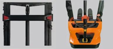 左:宽门架视野良好,右:可看到货叉,提高安全性