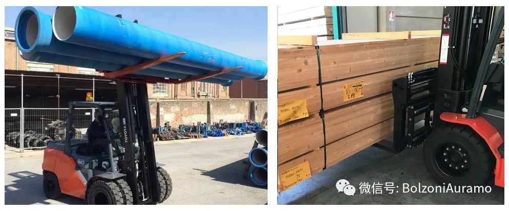 博索尼奥拉茂属具性能强大,坚固耐磨:可搬运各种建筑产品,如水泥、工程砖、水泥砖、块料铺砌、水泥管、超大结构、预制混凝土产品以及路缘石等等。博索尼奥拉茂为建筑领域提供丰富的属具型号,包括不同承载能力,不同张臂范围,以及其他技术规格。今天介绍的属具是重型多托盘叉,调距叉以及其他在建筑行业可以运用的属具。