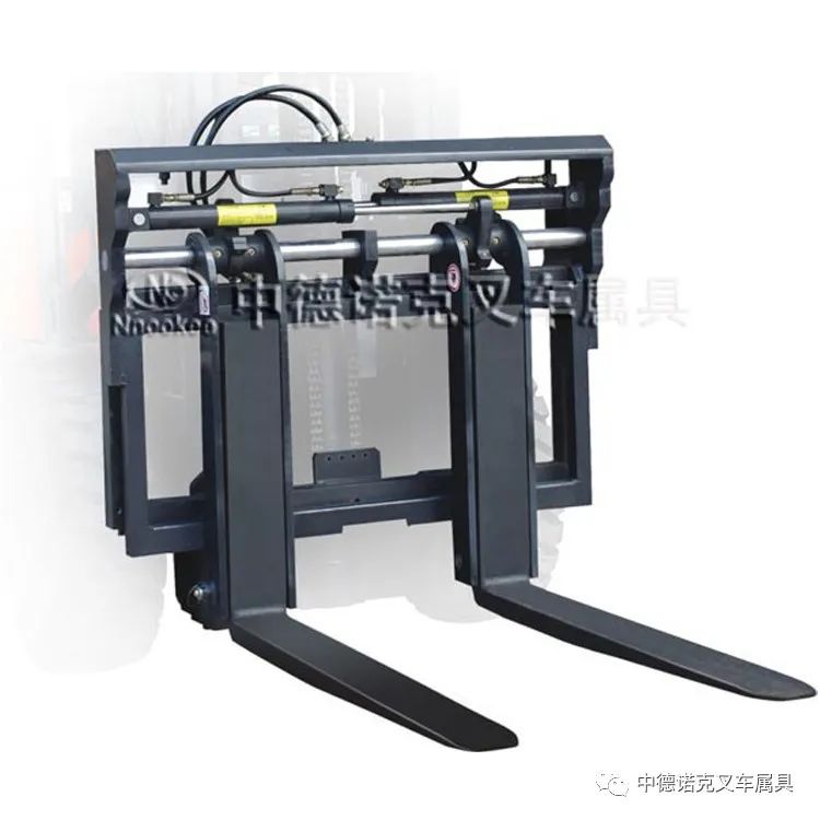 中德诺克调距器以合金钢材质铸成,具有快换式货叉挂勾,作业灵活度高;