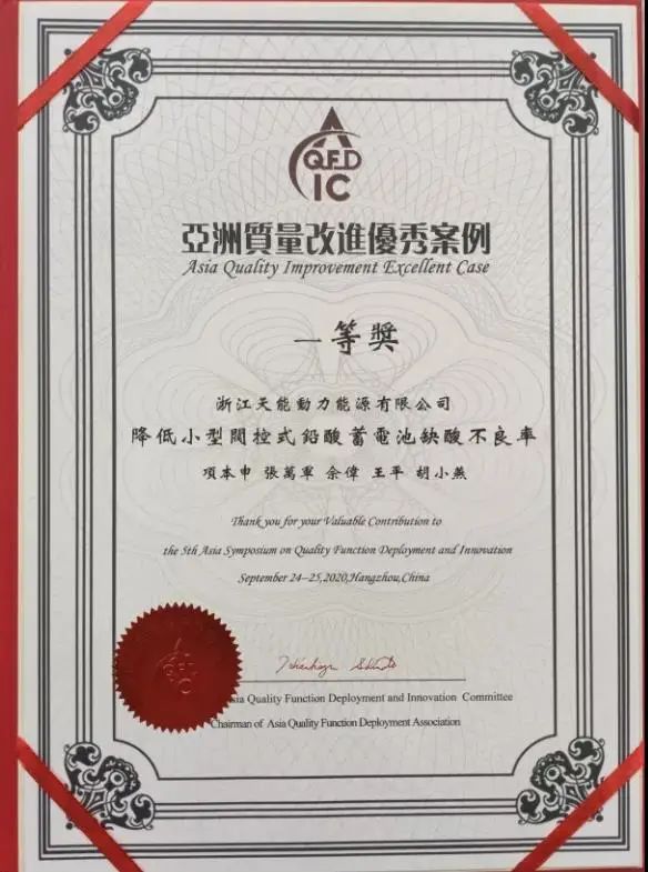 质量就是企业的生命。近年来,天能不断升级质量管理理念,推进全面质量管理,通过积极导入六西格玛管理等先进质量工具和方法,建立卓越运营管理体系,率先构建全生命周期绿色质量管理模式,探索出一条绿色可持续发展之路。
