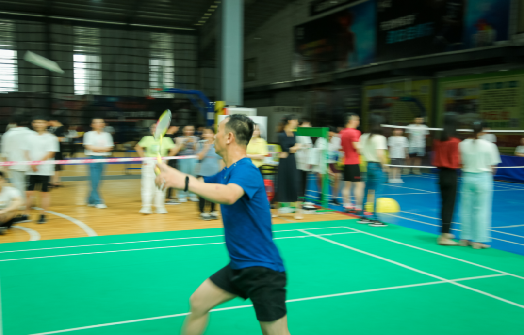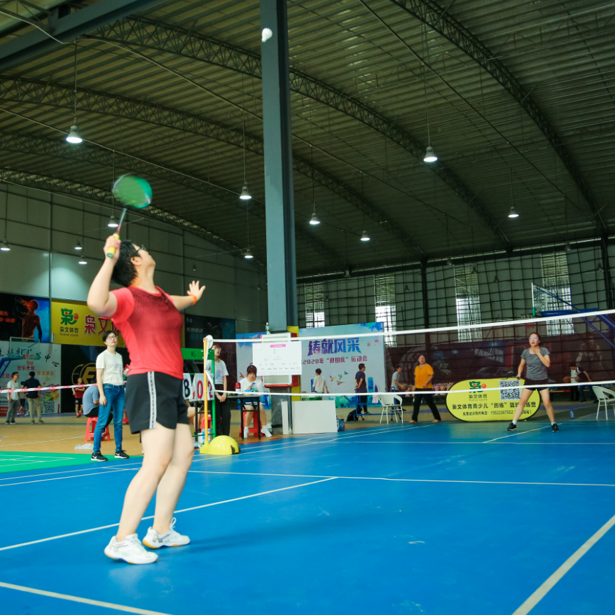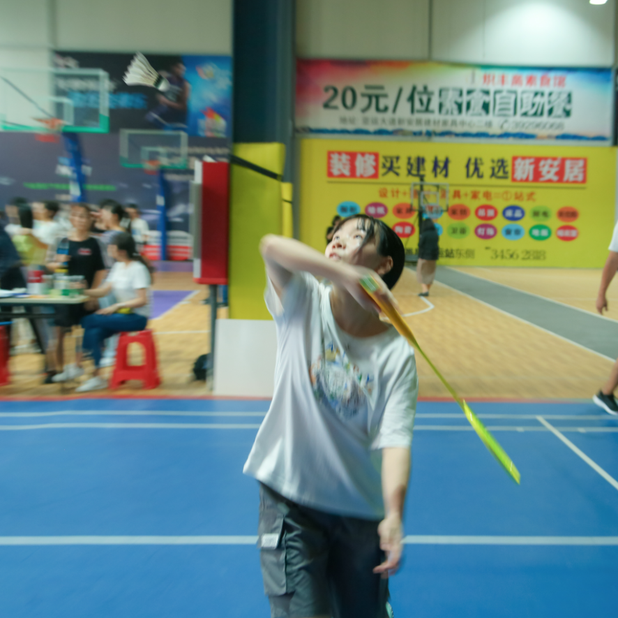 羽毛球单打比赛中,只见空中羽毛球时而像一只只轻盈的小鸟,时而像一道道闪电利箭,在空中不停的来回激战,让人眼花缭乱,目不暇接;