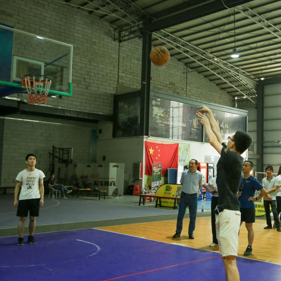 投篮比赛中,参赛选手们个个精神抖擞、手捧篮球,紧盯篮筐,屏气凝神,奋力投篮,现场围观的人也是目不转睛,生怕错过任何一个精彩瞬间。篮球碰撞声、加油声、喝彩声此起彼伏,整个赛场热闹非凡。