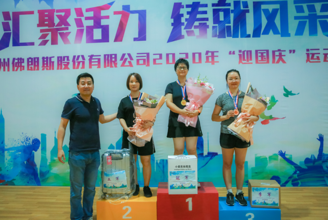 (总经理侯泽兵为女单羽毛球前三名颁奖)