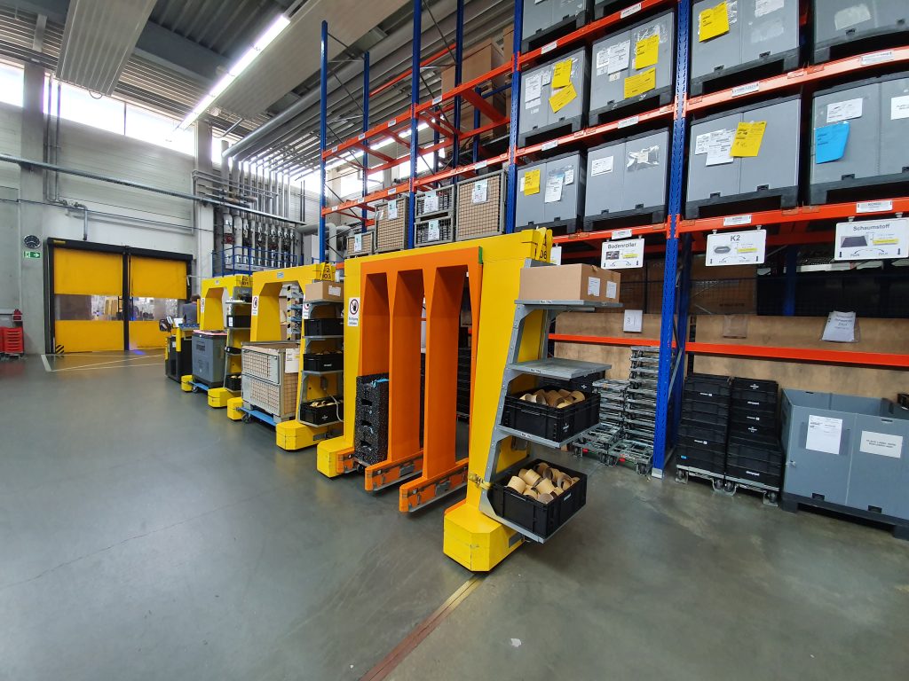 Ottmar Rupp说:“我们的主要目标是将来不使用叉车。这将减少生产设施的交通量和噪音,提高安全性和灵活性并节省成本。叉车通常通过运载托盘将物料搬运到生产线。然后,这些托盘通常会在运输过程中停留数小时,直到被处理。此外,叉车几乎总是在交付物料后空载返回仓库。近年来EBM-Papst公司产品的差异化不断增加,这不可避免地导致生产中的批量变小。同时,已经实践了多年的物料控制系统从点到点。很多订单都是按需来生产。因此,这给物料和零部件供应带来挑战,必须减少所有环节搬运的浪费。包括各种物料容器和包装品。“