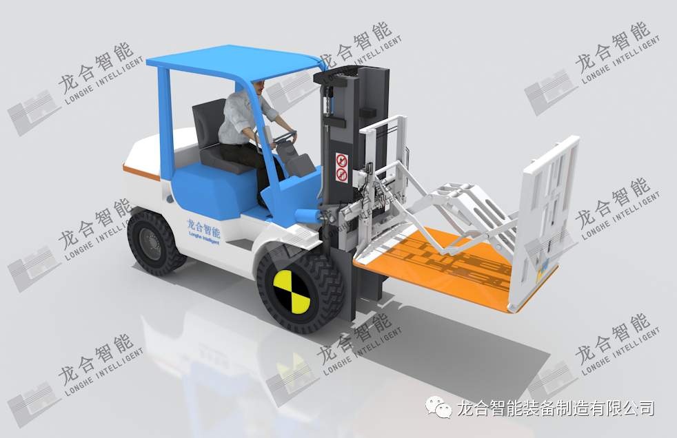 龙合智能设计生产的推拉器广泛用于无托盘类货物的搬运及堆垛作业中,无需传统托盘承载,无需拆码垛,借助纸质或塑料滑板牵引完成整垛货物的装卸作业。
