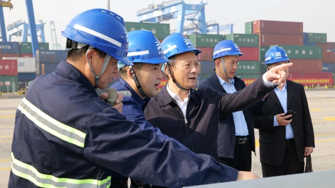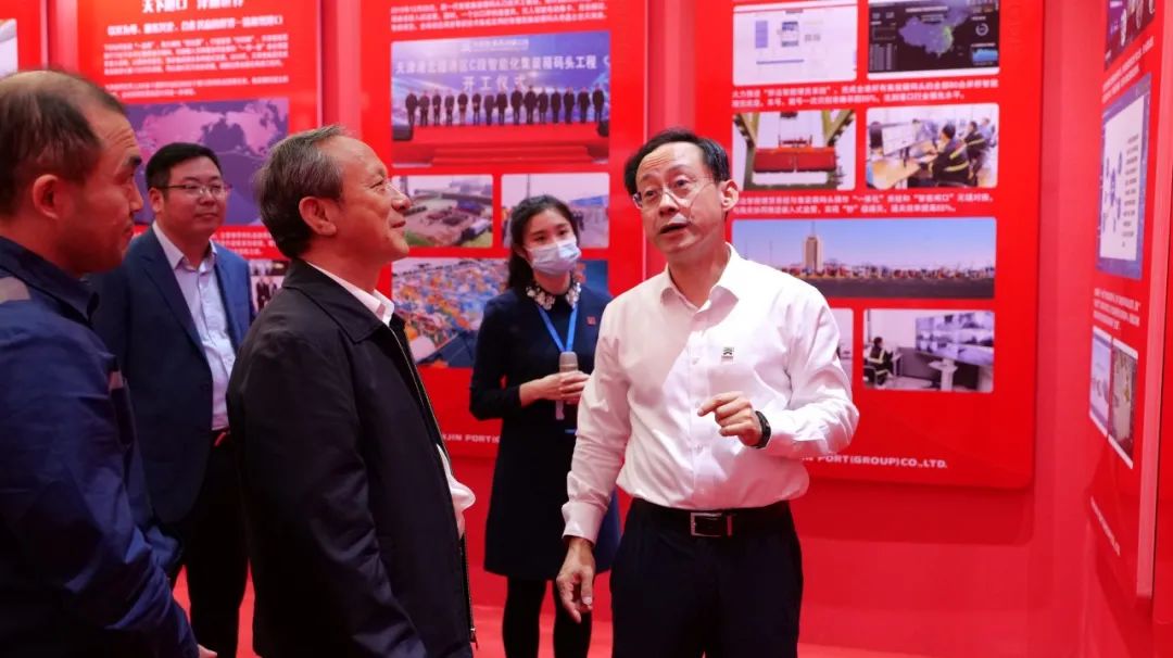 会谈前,王民一行还参观了天津港集装箱码头体验无人集卡运行、吊具维修中心、自动化操控中心,随后参观了“落实习总书记来港视察一周年图片展”。
