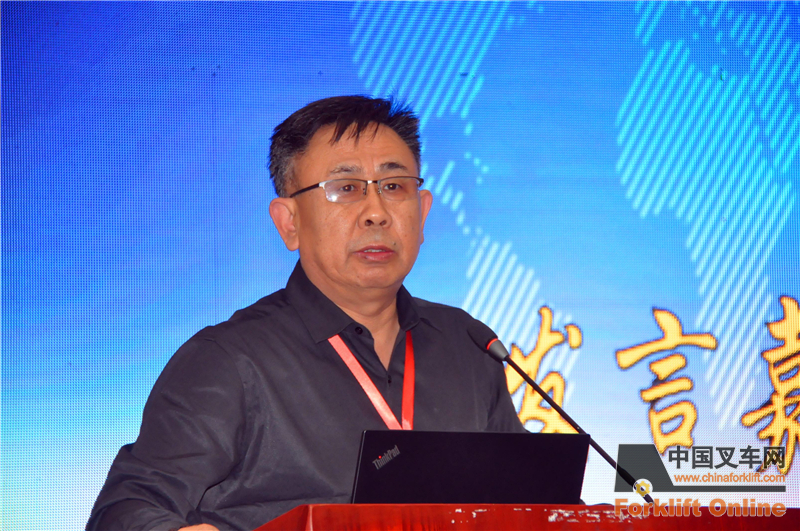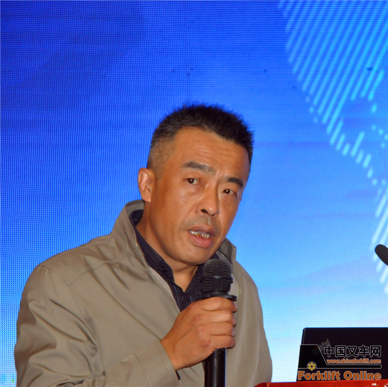 中机寰宇认证检验有限公司总经理牛海军发言,作为叉车行业老兵,他回顾了行业发展历程。感谢叉车和工业车辆会员参会交流,多年来对中心的支持。机构和名称虽然发生变化,但服务不变,只会一如既往。在转型升级,技术创新和产业优化过程中,检测中心会与时俱进,和行业同仁共赢。