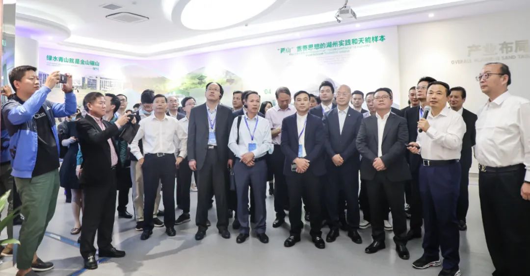 在天能文化展厅,一幅幅珍贵照片、一件件陈列物品向大家述说着天能30多年的创新发展历程。在天能循环经济产业园沙盘前,大家驻足良久,张天任董事长介绍了天能依托科技赋能,循环经济,绿色智造,引领产业向绿色、高端、高质转型,推动企业高质量发展的生动案例。
