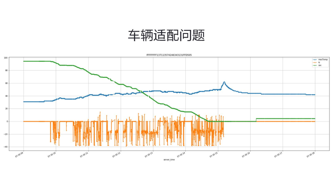下面这个图很有典型性,这是一个MOS微损坏的例子,MOS的内阻增大了,从图上来看,MOS的温度只是略有升高,但还是没有达到保护温度,我们通过与该批次其他设备的横向对比,定位出这个问题,这也是云端策略的优势,云端能看到单个嵌入式不能看到的其它设备的数据。