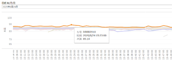 天气温度在25℃至36℃区间变化时, DBBB**910的水温均可稳定在88℃左右,但温度变化幅度大于其他车辆,且温度下降速度快(水箱风扇散热正常)