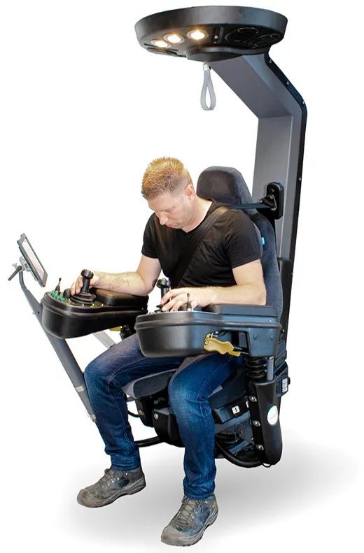 Merford Cabins的人体工学座椅Ergoseat安装在驾驶室顶部,操作员可以一览无余地观察下方的情况而不必弯腰,带有控制台的扶手设计允许手臂在设定的标准范围内,支撑前倾的躯干和工作姿势,椅子和扶手可在所有所需方向上调节静态工作姿势,减少背部和颈部不适。