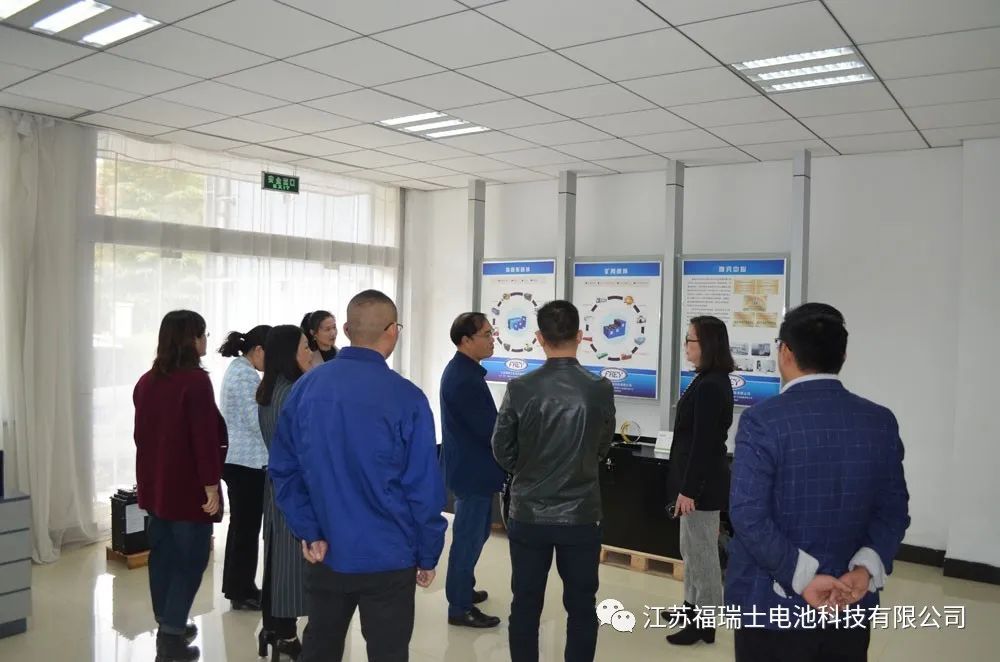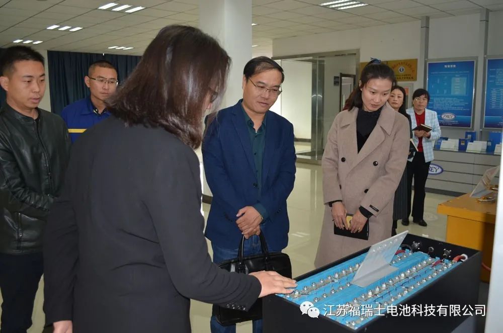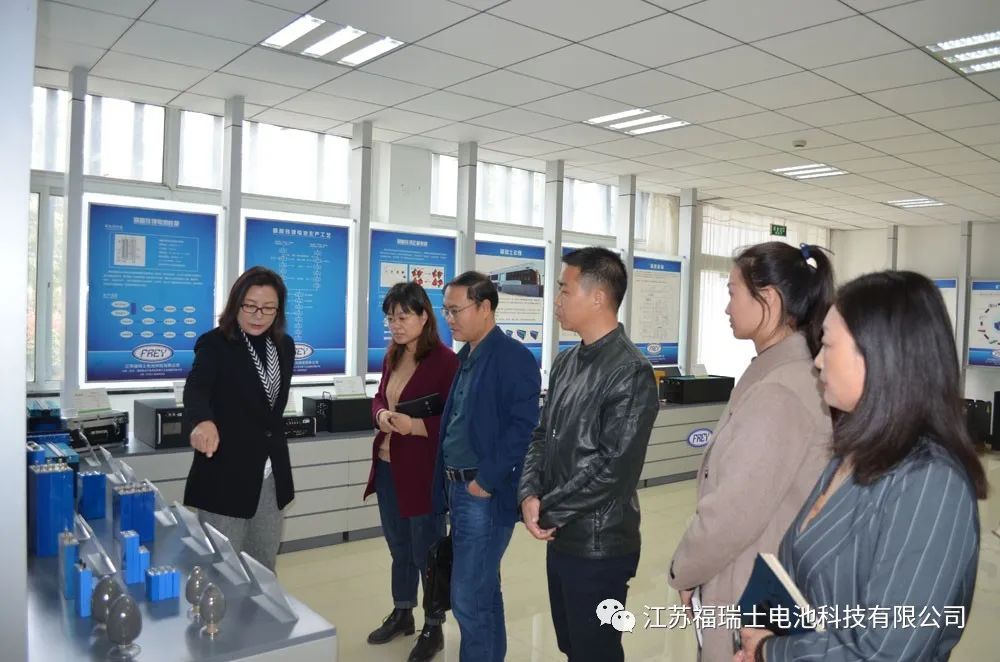2020年10月28日,徐州市铜山区发改委主任西安交通大学梁军艳教授陪同江苏省总工会黄金鑫、常州大学朱宝忠教授莅临江苏福瑞士电池科技有限公司调研。江苏福瑞士电池科技有限公司总经理姚红岩陪同参观。