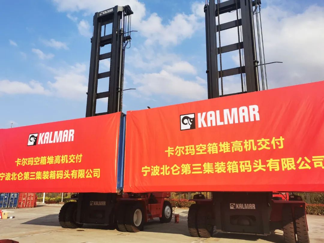 自2004年穿山港区开港以来,卡尔玛堆高机就一直作为北三集司空箱装卸的重要设备。多年来,双方一直保持着密切合作关系。目前码头运行的堆高机均来自卡尔玛,合计38台。加上此次交付的2台设备,未来将有40台卡尔玛堆高机共同助力北三集司运营。