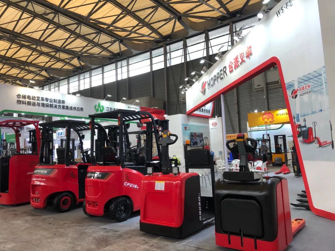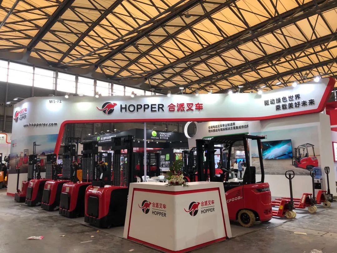 这次的展会合派叉车展会现场,以自身所处的位置,打造S形搭建展厅设计方式,大大的增加了产品展览的优势。