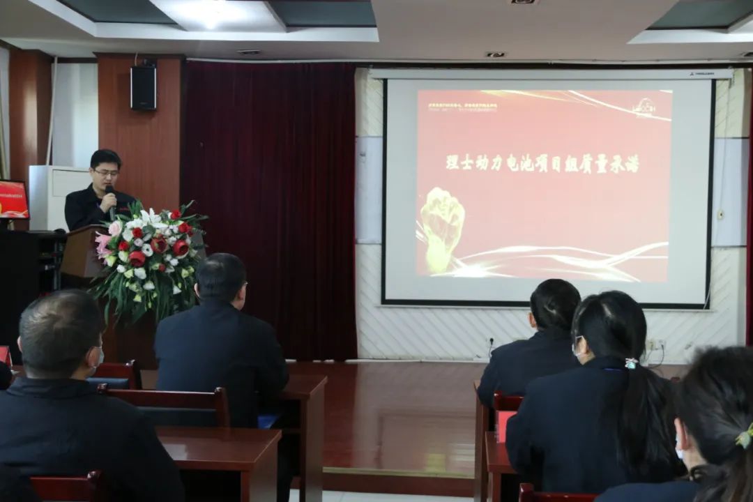 △力普拉斯运营副总经理樊建军发言为持续严把质量关,实现公司的质量目标。理士动力电池项目组承诺,要坚定不移的推进项目落地,坚决达成项目目标;理士生产部承诺,继续打造专业化的动力电池生产团队,培养团队的质量荣誉感,继续提升产品质量的管控措施;理士质量部承诺,打造优秀的监管机制,严格履责,以结果为导向确保客户获得满意的产品。