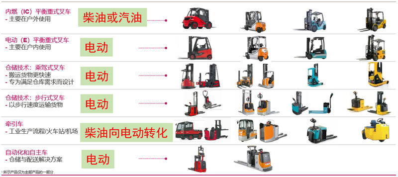 (以全球最大的德国林德叉车作为例子展示叉车的种类)