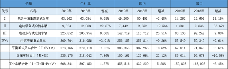 2019年全球叉车销量155万辆中国生产60.8万辆左右,全球第一。