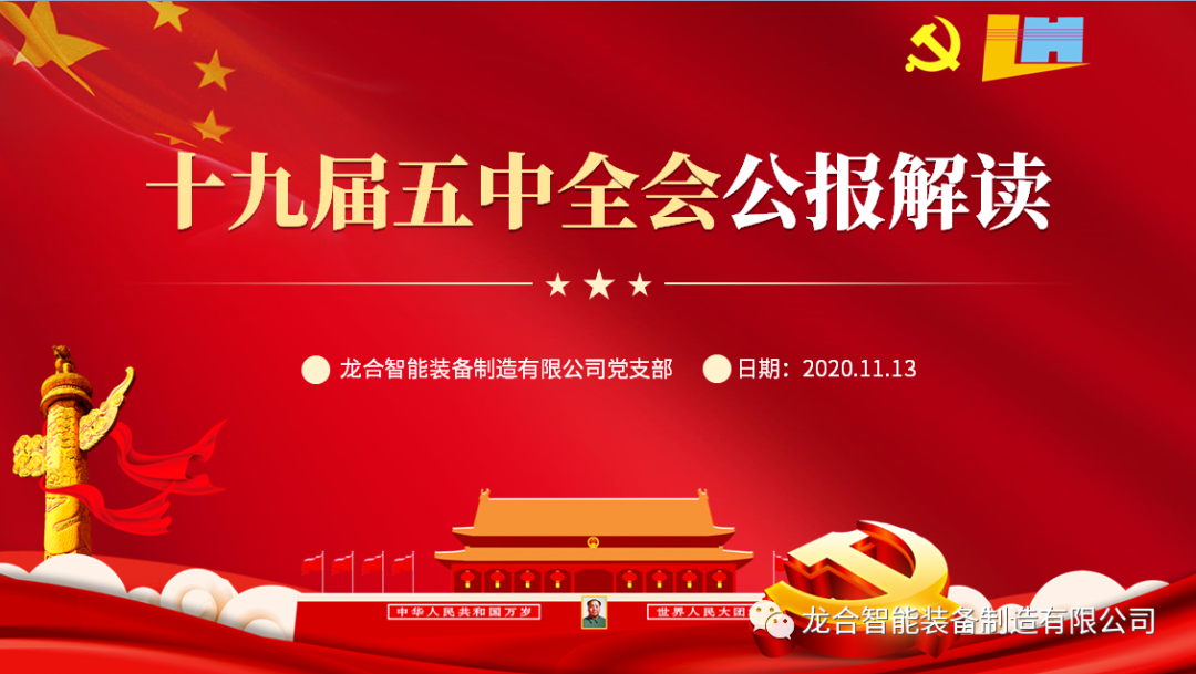 随后,龙合智能党支部书记谢定柱为双方党员同志们深度解读了党的十九届五中全会公报,并向大家分享了以“做新时代牢记使命的‘拓荒者’”为课题的精彩党课。