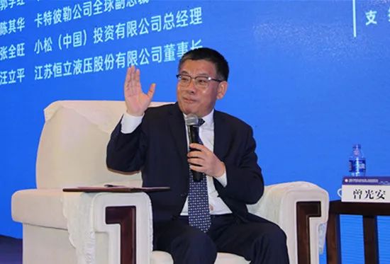 由协会副会长、广西柳工集团董事长曾光安主持,安徽叉车集团有限责任公司董事长张德进,临沂临工机械集团总裁于孟生,三一集团董事、三一重机董事长俞宏福,中联重科股份有限公司副总裁郭学红,卡特彼勒公司全球副总裁陈其华,小松(中国)投资有限公司总经理张全旺,江苏恒立液压股份有限公司董事长汪立平围绕论坛主题,就行业未来十年的发展趋势、双循环形势下行业面临的竞争格局、机遇与挑战以及2021年行业市场的整体预期等话题进行了深入的讨论。