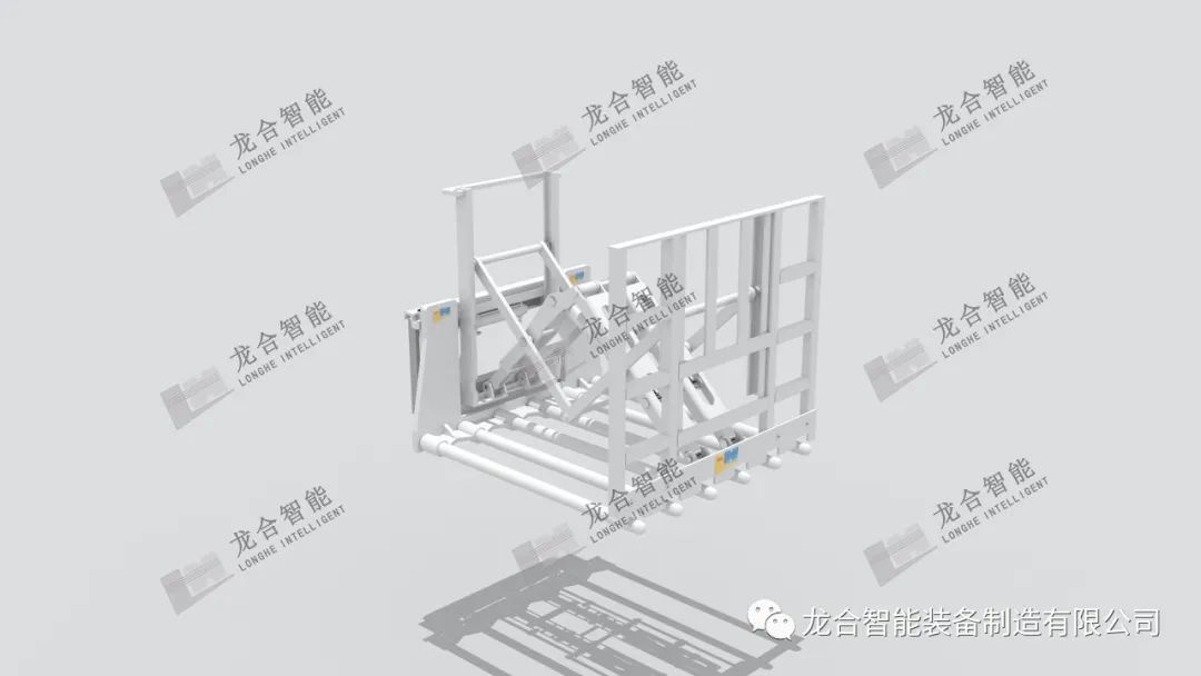 龙合智能设计生产的推出器广泛用于无托盘类货物的搬运及堆垛作业中,借助于所配的多个叉齿(可以设计成圆杆型或方型),叉入特殊的带有凹槽的载物托盘,叉车货叉架提升后推出器的多齿承载起货物,并与托盘分离,运至目的地后将货物推至目的处。