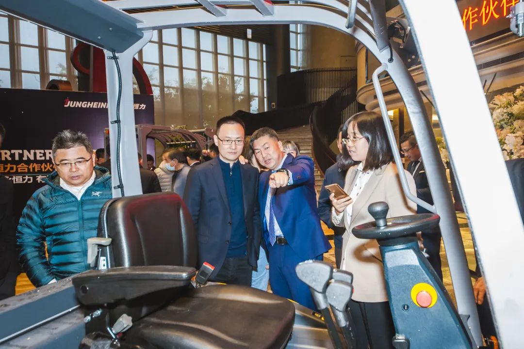 会议后半场,永恒力产品经理带领合作伙伴了解新款产品,试乘试驾,答惑解疑。现场来自各区域的合作伙伴更加坚定了与永恒力保持长远合作关系的信心,签约订单纷沓而至!
