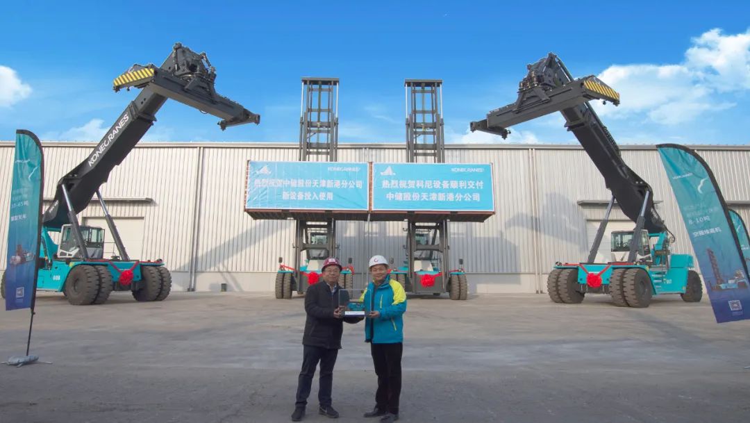 12月1日上午,科尼全新智能设备正式交付至中储发展股份有限公司天津新港分公司(以下简称中储股份天津新港分公司),并举行隆重交车仪式及系统性培训。本次共交付四台设备,包括两台SMV 4532 TCE5正面吊和两台SMV 6/7 ECC90堆高机,均安装了科尼TRUCONNECT®智能远程监控系统。