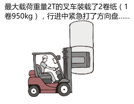 紧急转弯很容易造成货物跌落叉车侧翻,应先降下速度后再转弯。