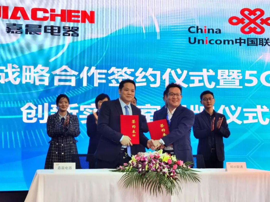 10月27日上午,郑州联通与郑州嘉晨电器有限公司举办5G战略合作协议签约暨5G联合创新实验室挂牌仪式。郑州经开区管委会工信局副局长张建涛、经开区经发局李振、郑州联通副总经理马成、郑州联通经开区营销中心总经理王旭、嘉晨电器董事长姚欣、首席技术官李飞、研发总监刘毅、郑州大学电气工程学院副教授徐晶、大连理工大学郑州研究院平台公司副总经理于坦等出席仪式。