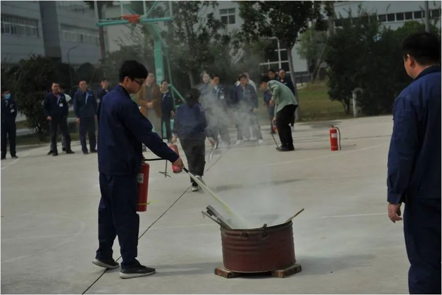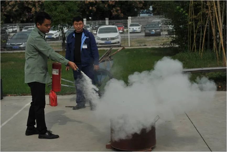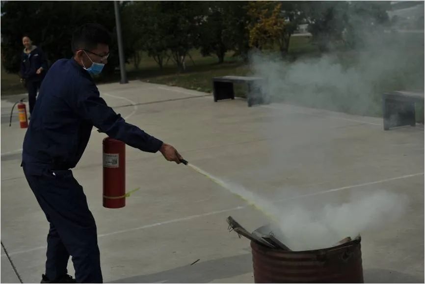随后,侯教官讲解了有关火灾现场的应急处置方案,灭火器的使用原理以及相关的注意事项。并亲自演练了灭火器的使用方法;在认真听讲及观摩后,参训员工亲自体验了现场灭火的过程,面对熊熊燃烧的火堆,参训员工表现的十分沉着,熟练地按照灭火的步骤和方法,将汽油燃起的浓烟大火成功的迅速扑灭,做到了冷静沉着的面对突发现象,成功快速的扑灭了大火。