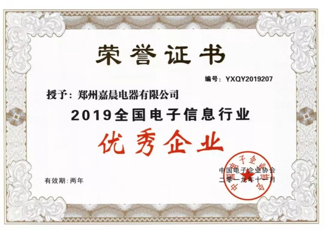 2019年11月28-29日,以“智能• 创新•发展”为主题的第九届中国电子高峰论坛暨2019全国电子信息行业优秀企业表彰大会在江苏泗阳成功召开。公司获评“2019全国电子信息行业优秀企业”,并在表彰大会现场获授奖牌和证书。