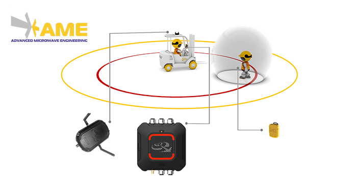 AME全新的防撞解决方案将始终允许通过两种类型的警报对驾驶员进行警告:车辆周围危险区域存在工人或其他车辆的预警(黄色)和警告(红色)。这样,驾驶员将能够及时进行干预以避免碰撞,从而使工作环境更加安全。