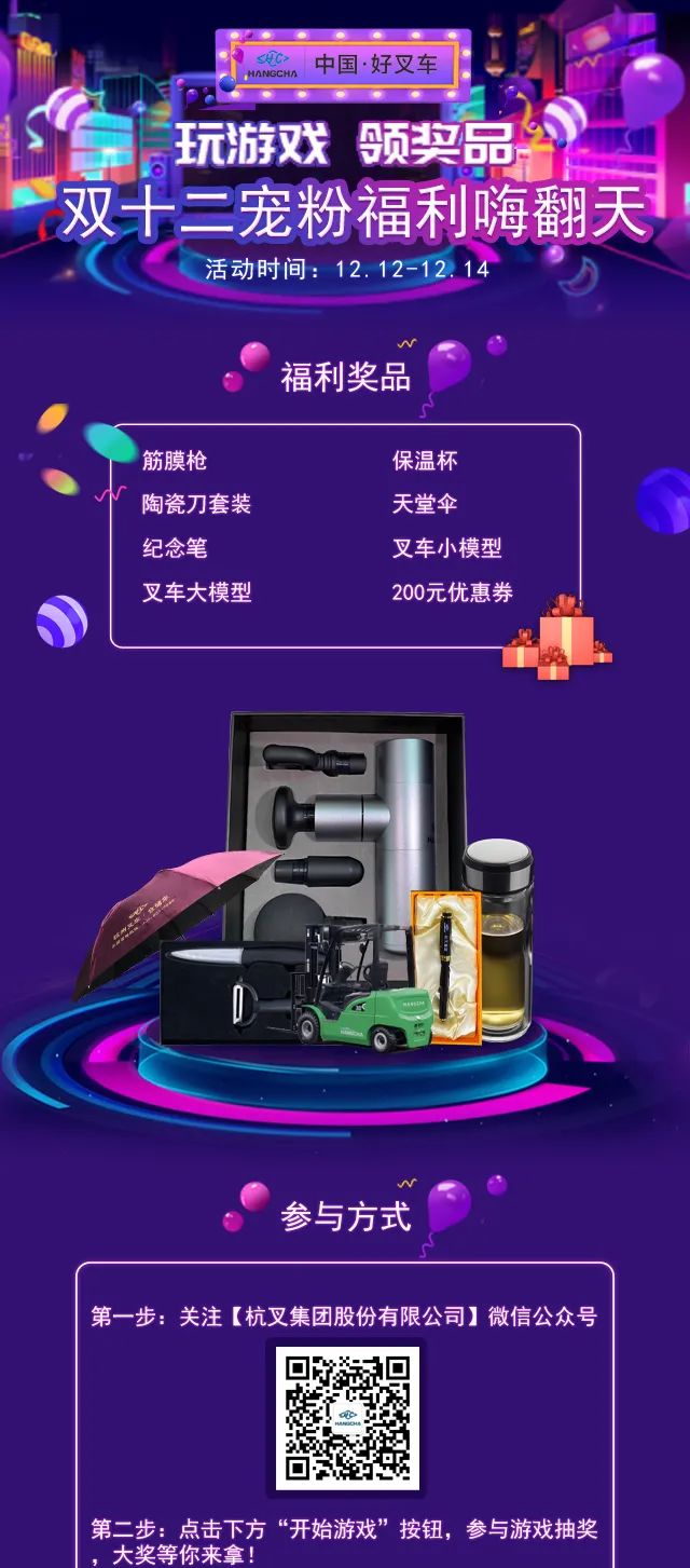 双12杭叉福利——参与游戏赢奖品!