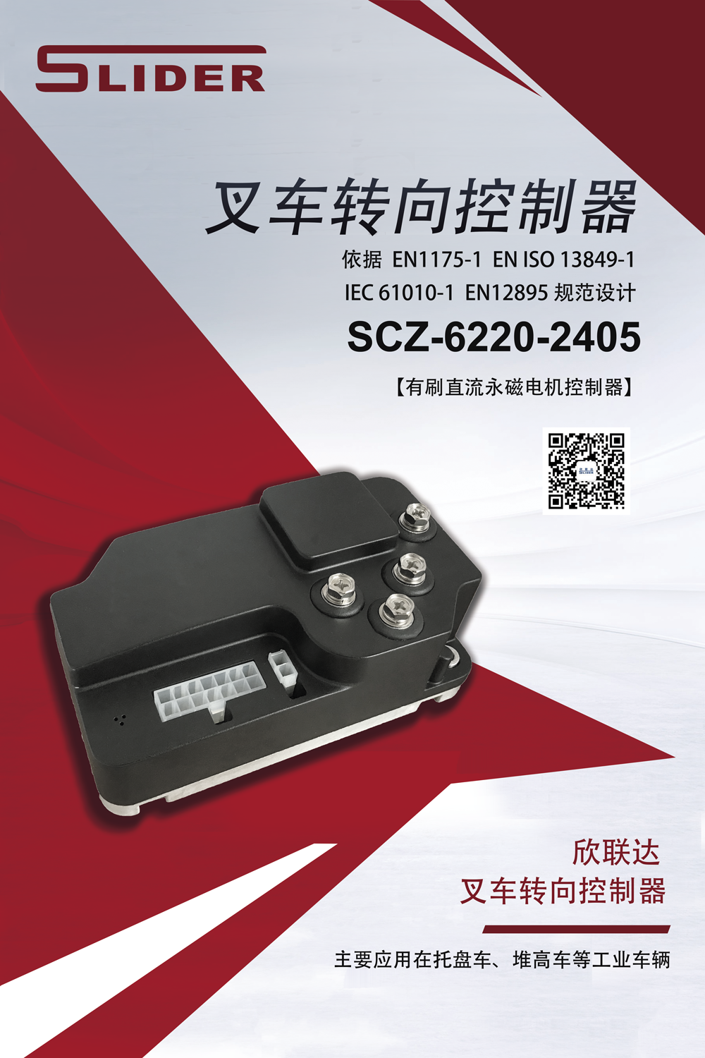 SCZ-6220-2405控制器是专为电转向系统设计的一款有刷直流永磁电机控制器 , 依据EN1175-1、EN ISO 13849-1、IEC 61010-1 、EN12895 规范设计而成,主要应用在托盘车、堆高车等工业车辆。