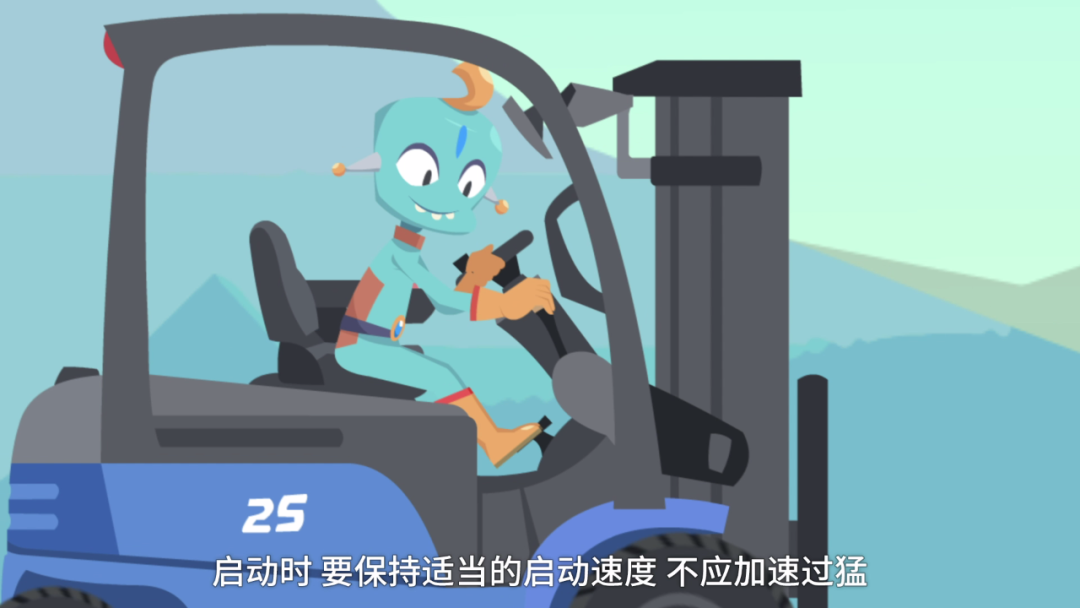 叉车起步前,观察确认无妨碍行车安全的障碍后,先鸣笛再起步,起步时应缓慢平稳;载物起步时,驾驶员应先确认所载货物稳固牢靠。