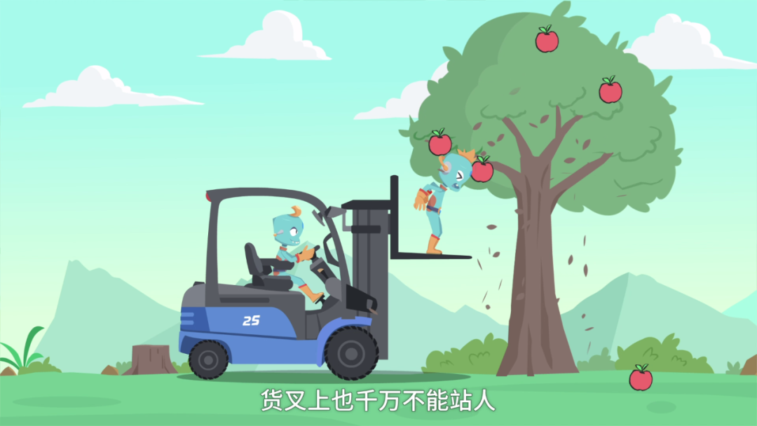 叉车行进作业时,禁止人员站在货叉上及其周围,以免货物倒塌伤人;为提高行驶稳定性并保证驾驶员良好的视野,载物行驶时可将货物向后倾斜,并不宜将货叉举升过高。