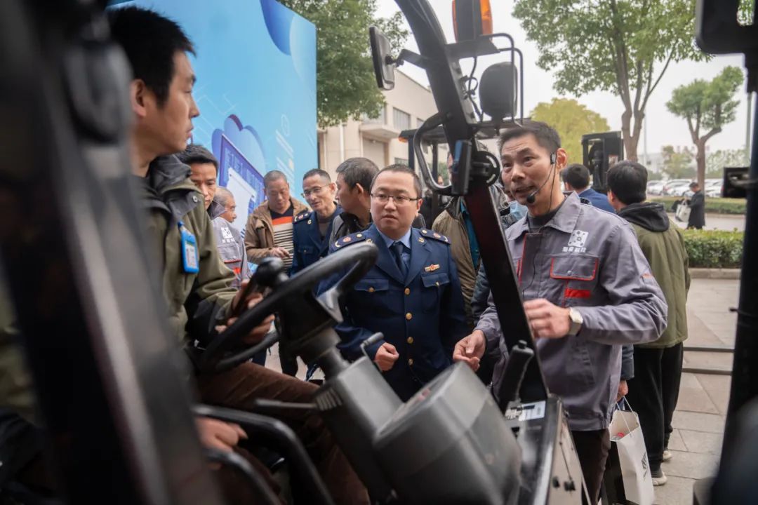 原来,金华市特检中心在销售单位金华腾飞叉车销售有限公司(杭州叉车总厂金华总经销)的配合下集中对14家企业的14台新购叉车进行了“无接触”式检验,让企业不用出门即享受到检验、登记、上牌4S店式的“一条龙”服务,大大方便了企业,同时也提高了检验工作效率,从源头上解决叉车未检验造成监管盲区等痛点问题。
