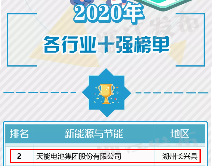12月18日下午,在全省高新技术企业发展大会暨浙江省高新技术企业协会第二届第三次理事会议上,天能股份获得两项奖牌,分别上榜“浙江省高新技术企业百强”第31位,新能源与节能行业十强榜单第2位。