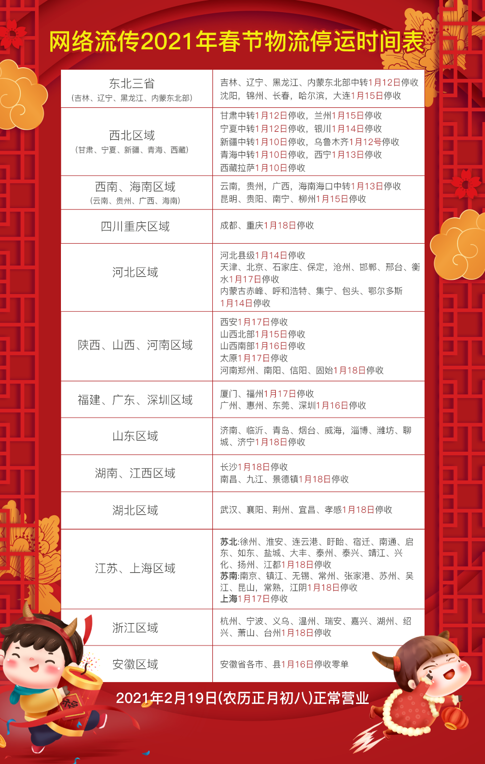 从网络得知,今年物流停运比往年早,最早1月10日开始停运,直到2月19日开始正常营业。考虑到疫情的影响,春节期间或仍将出现有价无货的行情,想要做好春节生意,提前备足货是关键。