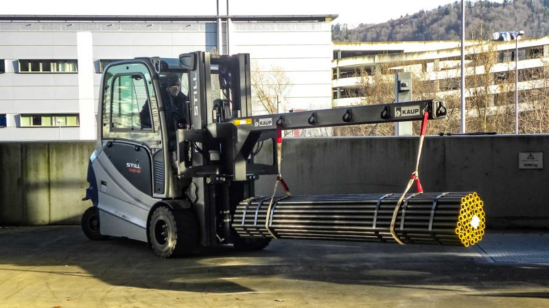 KAUP's extensive range of products covers various solutions for all different material handling applications. KAUP has, apart from Sideshifters, Fork Positioners and Co., other attachments in their portfolio.Crane jibs, carrying rams, tipping carriage, loading bucket, bucket discharging device and snow plough blade cannot be allocated to any of the normal product families they are listed in this sector. These attachments with special solutions round off the KAUP product range and further extend the application possibilities of the forklift truck.