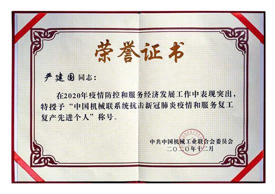 本次表彰活动,是对中国工程机械工业协会疫情防控和行业发展两手抓相关工作成绩的肯定。中国工程机械工业协会仍要认真贯彻十九大五中全会和中央经济工作会议精神,切实加强党的领导,建设科学系统的工作体系;正确研判形势,增强勇于担当的使命感;统筹推进疫情防控和各项工作,在巩固行业良好发展势头的基础上,实现2021年良好开局;在构建“以国内大循环为主体,国内国际双循环相互促进的新发展格局”中发挥积极作用,以行业高质量发展的优异成绩向建党100周年献礼。