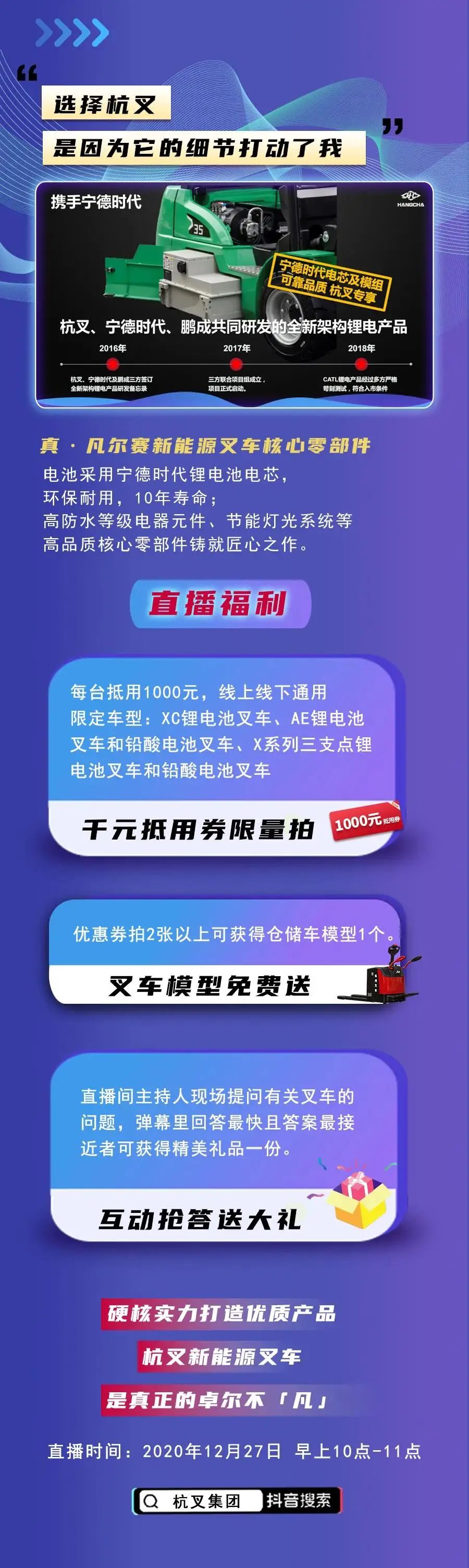 周日早上10点抢券!电叉每台立减一千元!更有冬日电叉使用小技巧,请准时来到杭叉抖音直播间!