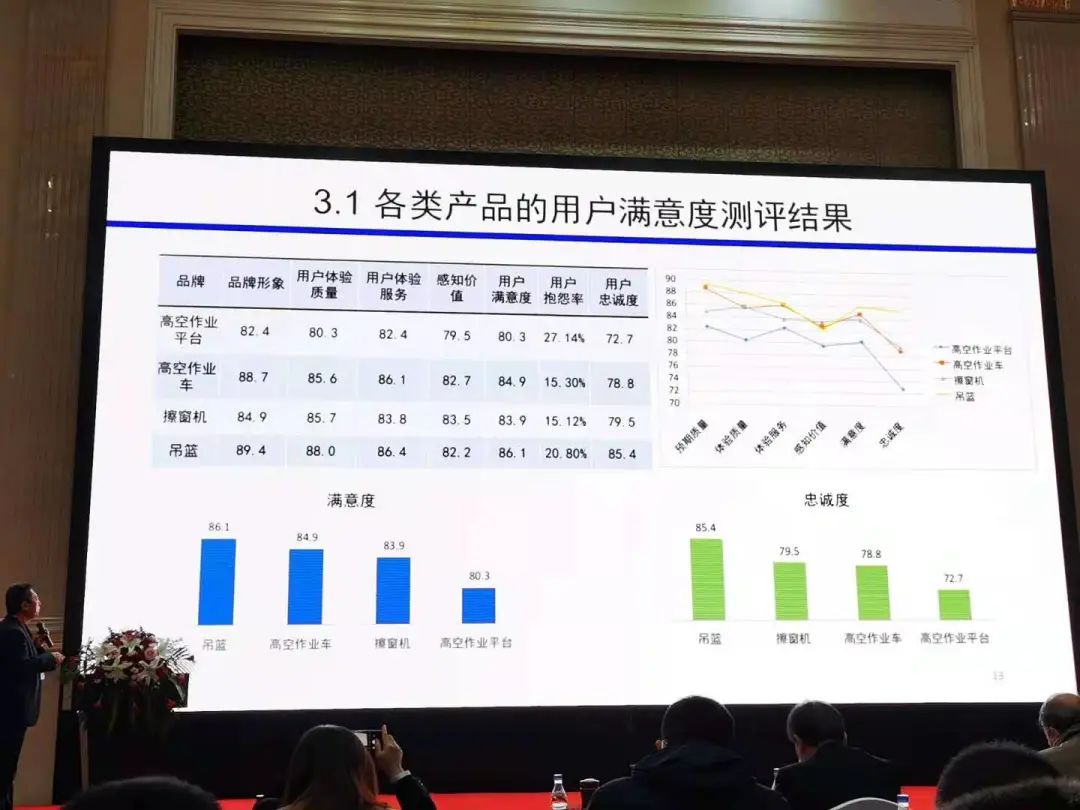 中国建筑科学研究院建筑机械化研究分院咨询中心主任侯宝佳公布“高空作业机械领域主要机种产品用户满意度测评结果”