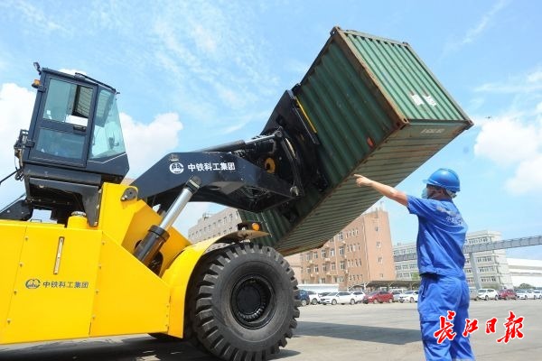 长江网7月31日讯7月31日,由武汉中铁科工集团研制的自由旋转重型叉车在武汉江夏轨道交通装备有限公司研制成功,并进入全方位试验,该项目在国际重型叉车行业中处于领先水平。该叉车最大可叉取40吨集装箱,最大水平起升高度2.7米,实现集装箱360°旋转,且占地小,机动灵活,适应集装箱铁路水运联运合作发展趋势。【详情】
