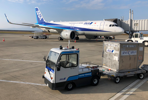 全日空航空公司(ANA)和日本丰田叉车在12月14日到12月18日于ANA九州佐贺国际机场进行了自动化搬运实验。本次实验的测试对象是两家公司共同开发的【托运行李堆垛机器人】和【无人驾驶牵引车】两者配合的情况。