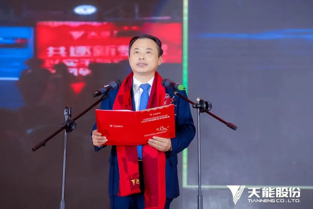 天能控股集团党委书记、董事长张天任在致辞中向一直以来关心支持天能事业发展的各级领导、各界朋友,向全体天能人及家人,致以新年的亲切问候和美好祝福!他表示:“2020年是极不平凡的一年。面对复杂严峻的国际国内形势,特别是新冠疫情带来的不利影响,在各级党委、政府的正确领导下,我们坚定信心、砥砺前行,很辛苦、也很充实,有付出、更有收获,交出了一份来之不易、令人满意的成绩单。在数字天能、产业布局、变革创新等方面取得了新的突破!这一切,都是大家干出来、拼出来、奋斗出来的!”面对2021年新征程、新目标,董事长殷切希望铅酸电池事业部抢抓机遇、乘势而上,勇扛变革大旗、勇挑发展重担,成为天能高质量发展的开路先锋和排头兵。