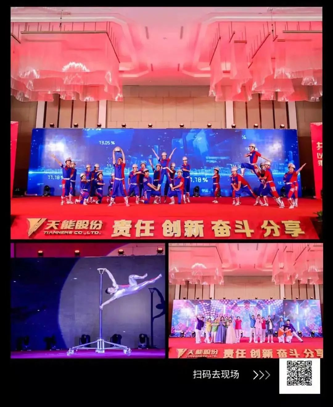 迎着新年的曙光,吹响出发的号角,在压轴的《劳动托起天能梦》中,演员们放声高歌,每一张笑脸、每一句歌声都折射着天能不断创新创造、开疆拓土的旺盛士气。