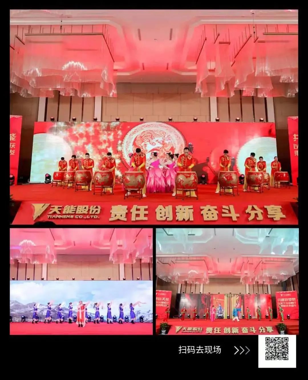 《再出发·翱翔》篇章向我们展示了天能发展的步伐永不停歇,《高原蓝》为我们演绎了天能海纳百川的多民族文化融合;浙江特色戏曲《十全十美满堂红》弘扬了中华民族的优秀戏曲文化;《金鼓齐鸣贺天能》诠释了属于天能人的伟力。