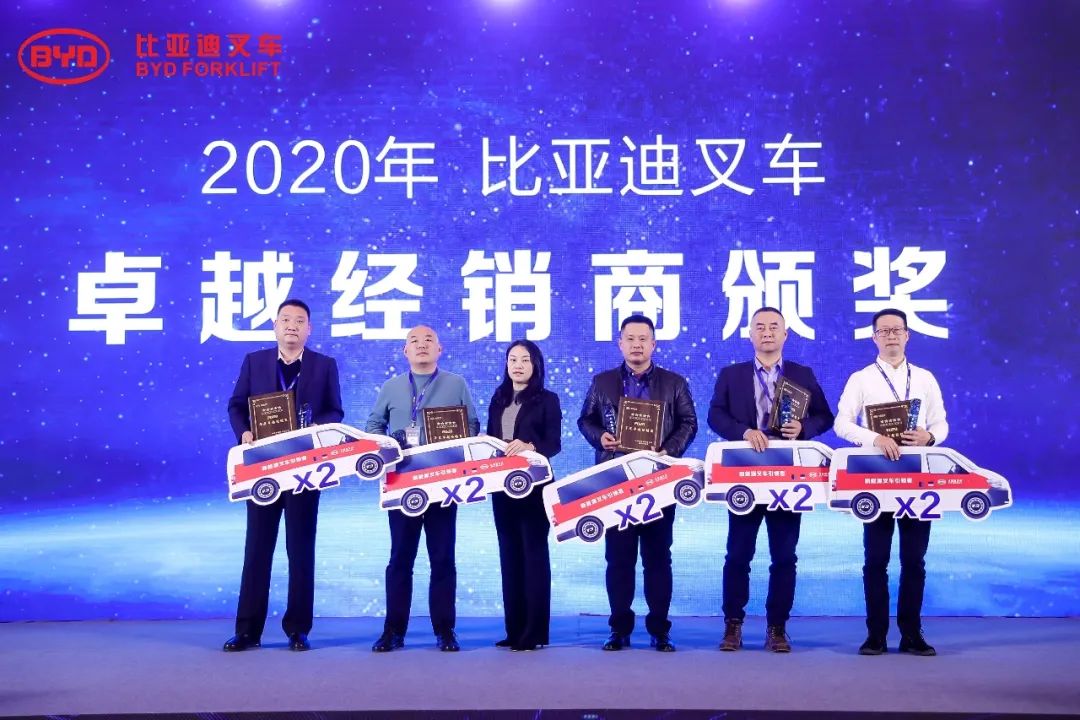 大会同时颁发了非凡营销奖、卓越经销商奖项,也对在2020年销售业绩表现突出的经销商进行了奖励,以感谢他们对比亚迪叉车发展做出的杰出贡献。