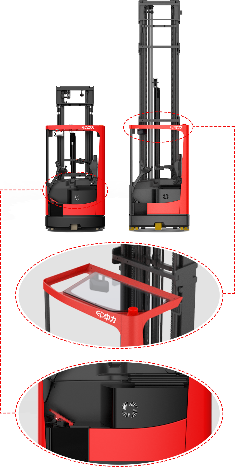5、高透光护顶架+油管偏置设计+无线摄像头,全景堆垛视野,堆垛更轻松。
