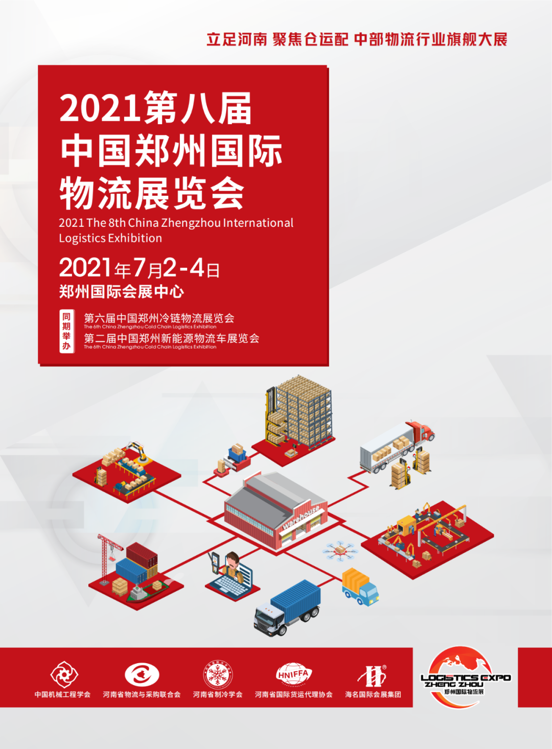 2021郑州物流展由中国机械工程学会、河南省物流与采购联合会、河南省制冷学会、河南省国际货运代理协会、海名国际会展集团联合主办,汉诺威米兰展览(上海)有限公司特别支持、郑州海名汇博会展策划有限公司承办。立足河南 聚焦仓运配 打造中部物流行业旗舰大展。2021郑州物流展同期举办2021第六届郑州冷链物流展与2021第二届郑州新能源物流车展。